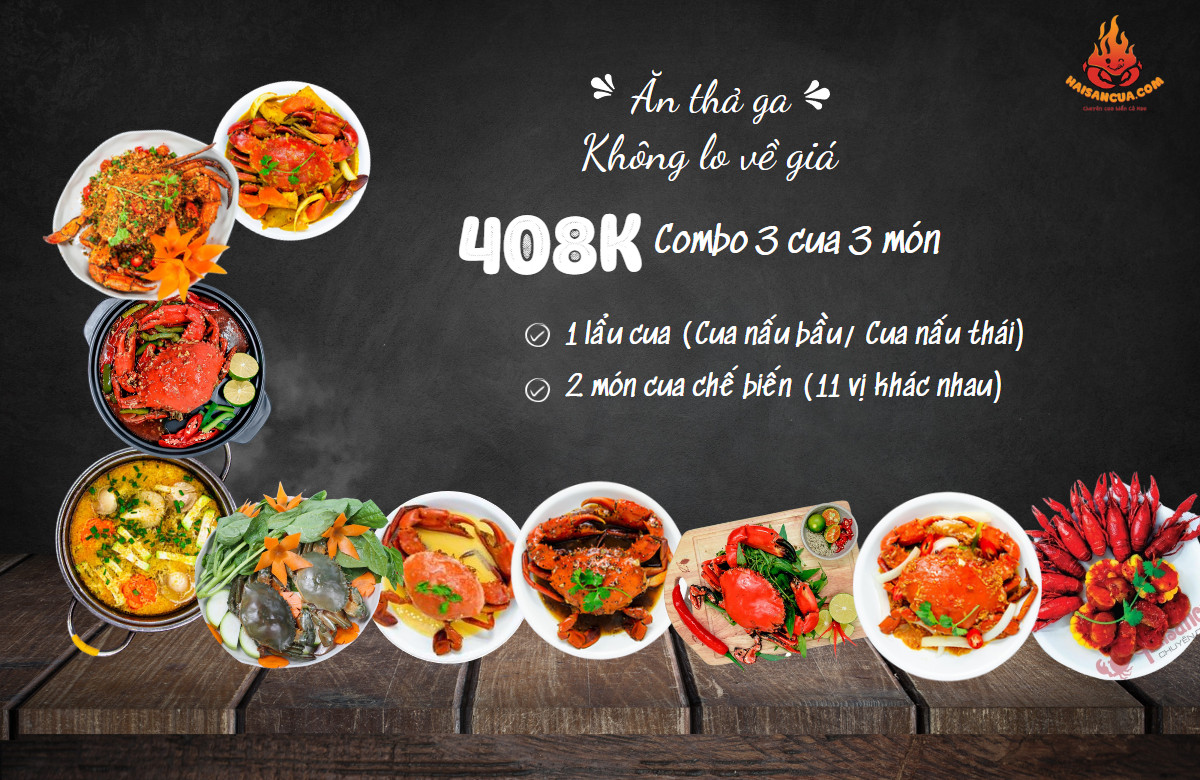 1. Ưu đãi tẹt-ga cùng chương trình COMBO 3 CUA 3 MÓN 408K ĐỘC LẠ (giá gốc 597k),