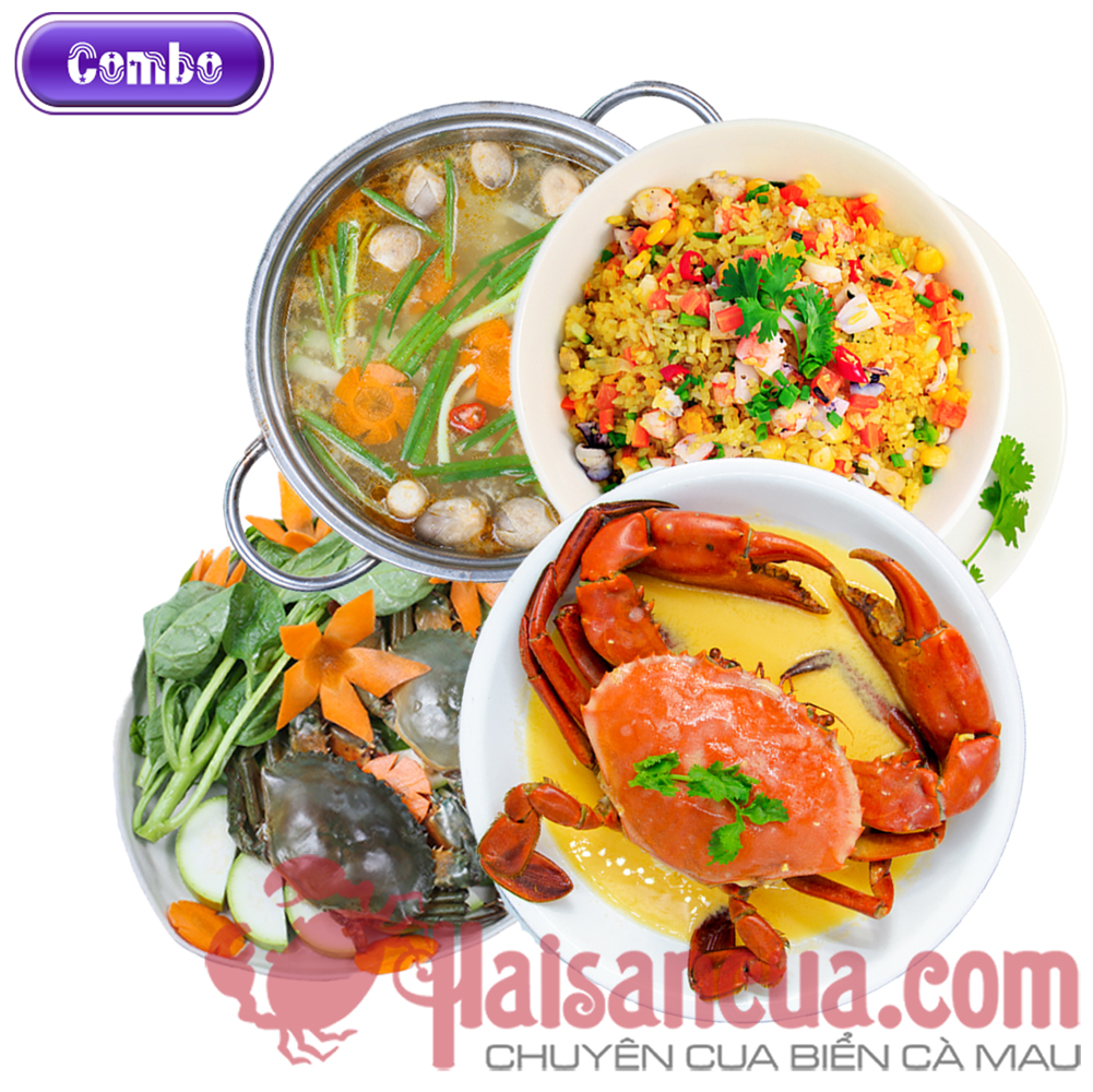 - Combo 3 Cua số 1: Cua Xốt Trứng Muối + Cơm Chiên Thịt Cua + Lẩu Cua Nấu Bầu
