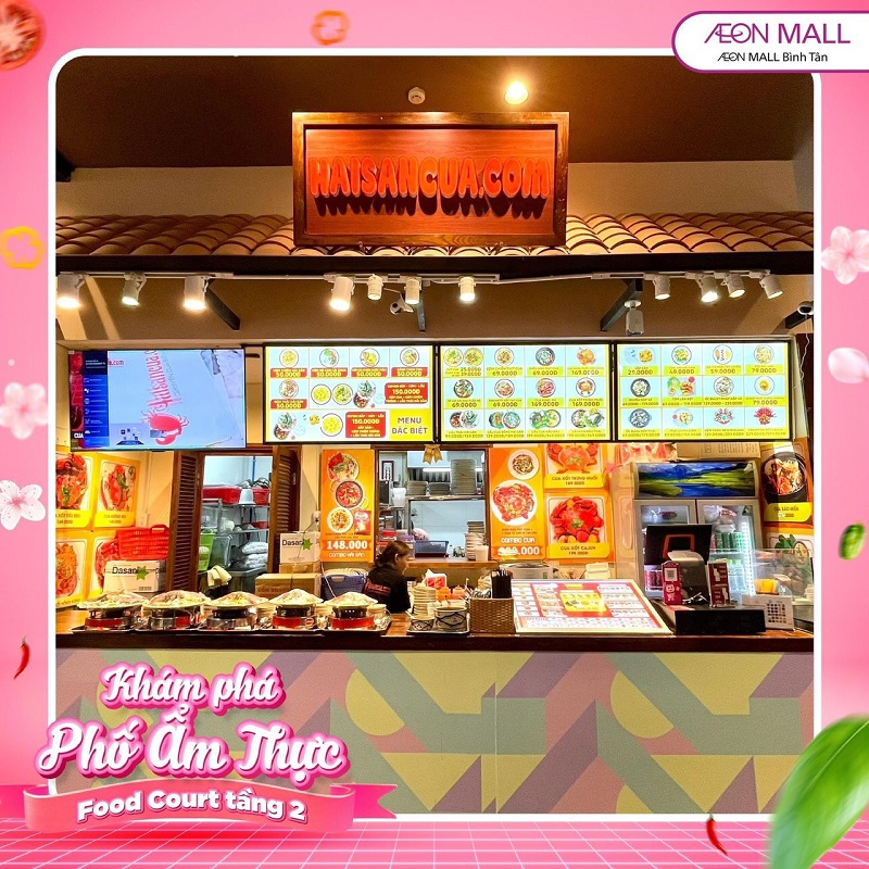 Chi nhánh thứ 3 của Haisancua.com, nằm ở khu Food Court AEON MALL BÌNH TÂN, phục vụ các món hải sản và đặc biệt là Cua biển Cà Mau, có cả Cua tươi cho thực khách muốn chế biến tại nhà theo khẩu vị riêng. Vị trí thuận tiện cho việc vui chơi giải trí mua sắm, khu ăn uống rộng rãi, sạch sẽ thoáng mát, đảm bảo nhu cầu nghỉ ngơi và ăn uống của thực khách.