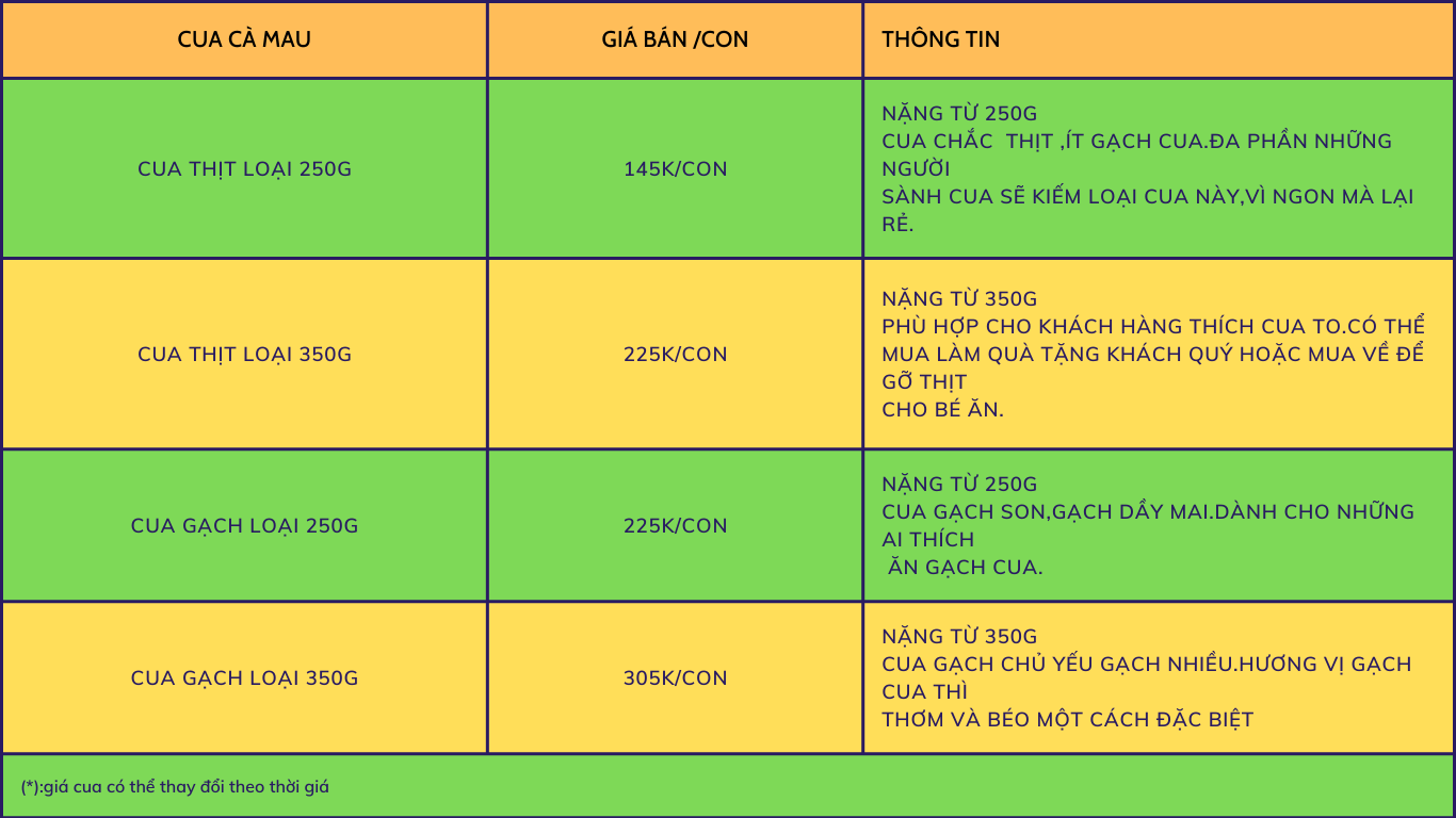 🏖 Cua thịt 250g-350g, giá chỉ từ 145k/con-225k/con