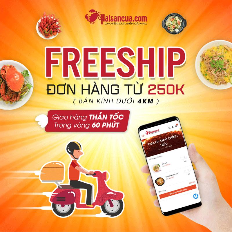 Nhằm phục vụ hết sức có thể cho khách hàng cũng như tạo cảm giác thoải mái khi khách hàng quyết định chọn Haisancua.com làm nơi để có những bữa ăn ngon, vui vẻ, Haisancua.com quyết định sẽ thực hiện chương trình hỗ trợ phí vận chuyển cho các đơn hàng có tổng giá trị trên 250.000 vnđ.